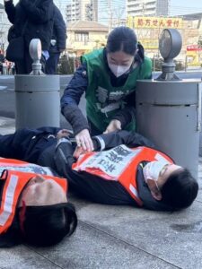 震度6強の地震発生を想定し、複数の拠点で行われた医療救護訓練に看護師として参加しました。