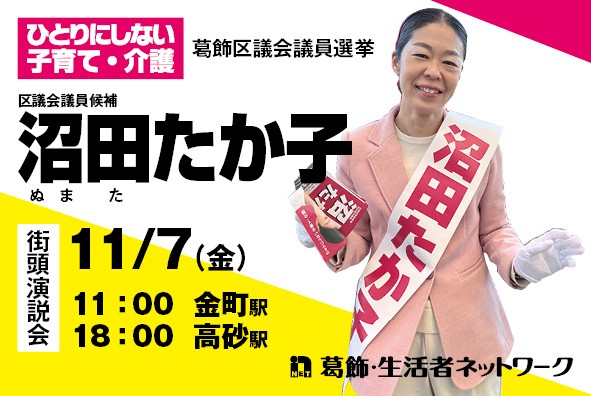 葛飾・生活者ネットワーク 区議会議員候補 沼田たか子 街頭演説会